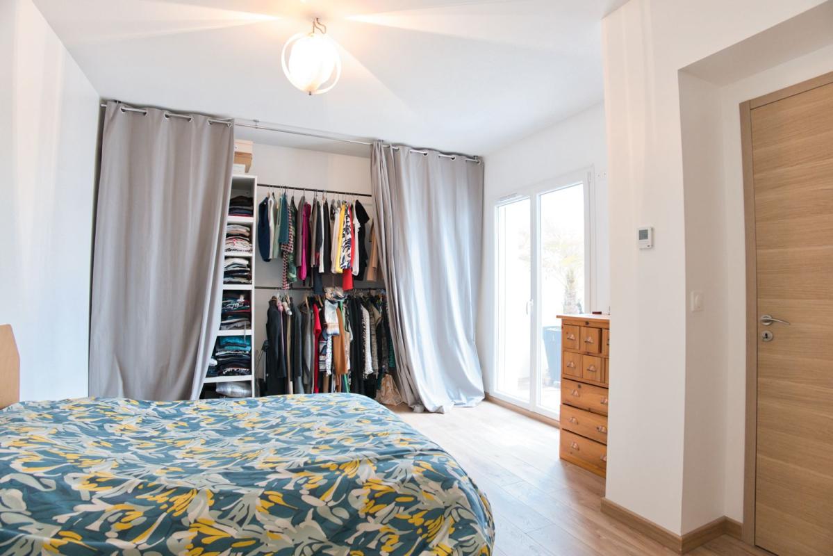 Elle se compose de la manière suivante : Un grand salon / salle à manger traversant de 96 m² avec cuisine ouverte entièrement équipée. Côté cuisine, un espace buanderie complète la pièce. Une grande salle de bains avec double vasques, baignoire balnéo et douche italienne. Ce bien comporte 4 chambres dont 3 avec porte-fenêtre et 1 avec fenêtre et puit de lumière. Une première chambre avec accès direct à un patio, une deuxième chambre (chambre parentale) donnant également accès au patio, et communiquant avec une salle d’eau partagée avec la troisième chambre. Enfin, une quatrième chambre dispose également d’un accès direct sur la terrasse à l’avant de la maison. Un WC séparé.