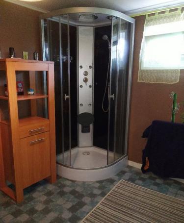 - une piéce aménagée pouvant service de chambre ou bureau avec une grande salle d'eau.