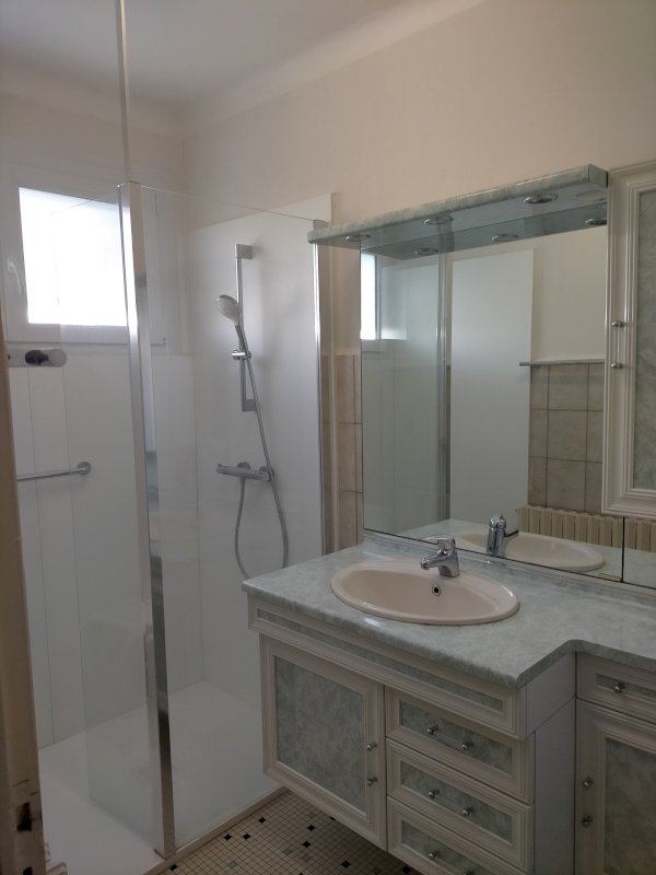 S d'eau avec fenêtre et grande douche italienne, meuble vasque et colonne (nombreux rangements) WC indépendant.