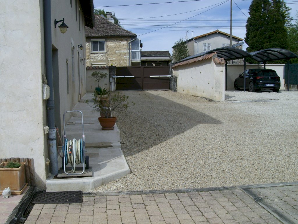 Terrain de 1600 m² clos et arboré. Portail électrique, carport pour 2 voitures.